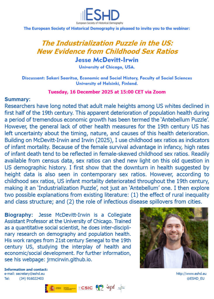 Webinar THE INDUSTRIALIZATION PUZZLE IN THE US: NEW EVIDENCE FROM CHILDHOOD SEX RATIOS