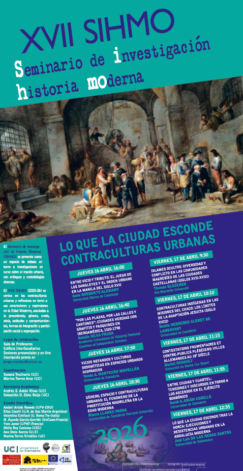 Los próximos 16 y 17 de abril tendrá lugar el XVII Seminario de investigación de Historia Moderna (XVII SIHMO 2026) que tendrá como tema principal «Lo que la ciudad esconde: contraculturas urbanas».