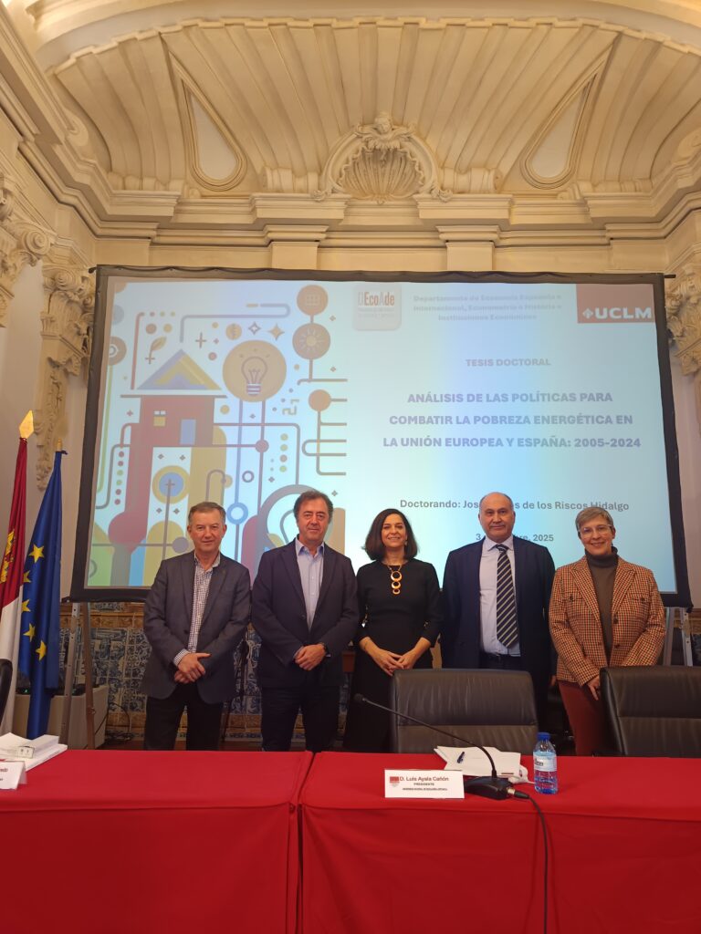 El pasado 3 de diciembre en la Facultad de Ciencias Jurídicas y Sociales de Toledo, el doctorando Jose Carlos de los Riscos defendió la Tesis «ANÁLISIS DE LAS POLITICAS PARA COMBATIR LA POBREZA ENERGÉTICA EN LA UE Y ESPAÑA, 2005-2024″, dirigida por la profesora Leticia Blazquez y con un Tribunal compuesto por el Presidente Luis Ayala Cañón (UNED), vocal Jose García Quevedo (UB) y Secretaria Maria Angeles Davia Rodriguez (UCLM).