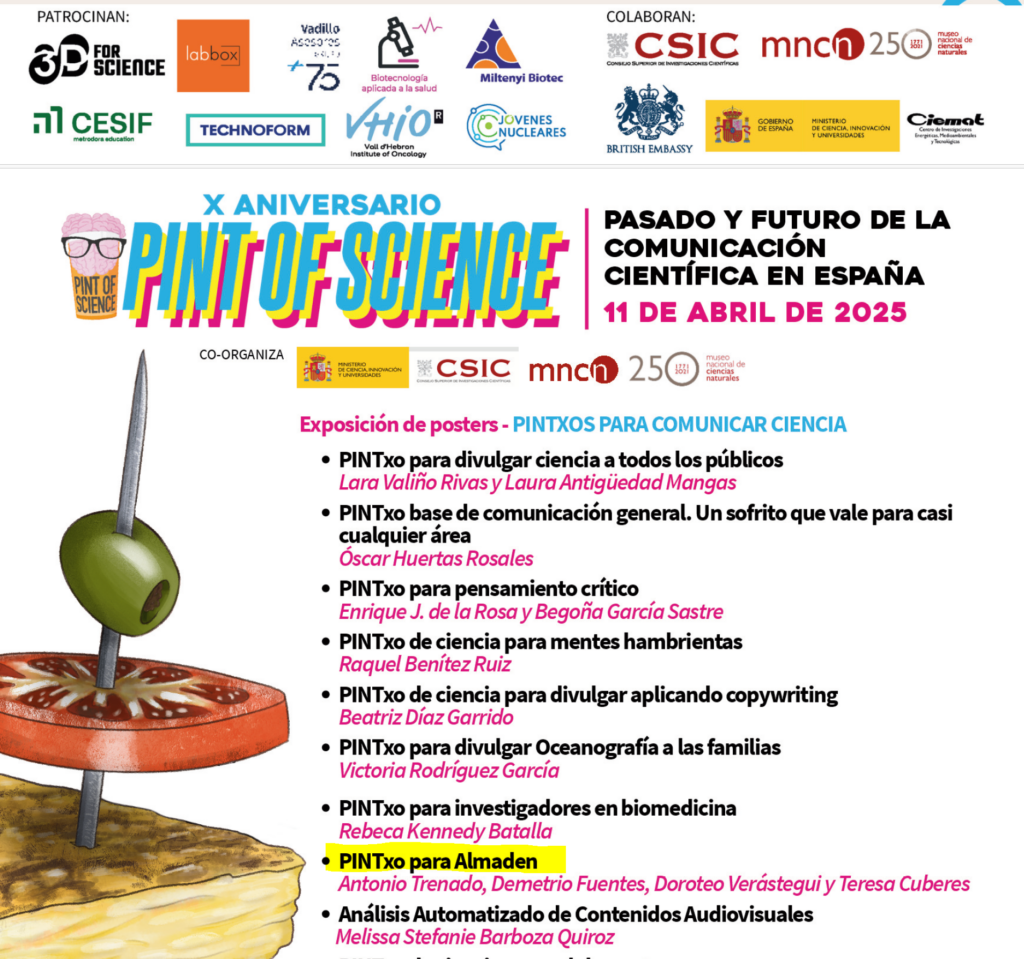 Este año, nuestro grupo está participando en la organización de Pint of Science en Almadén.