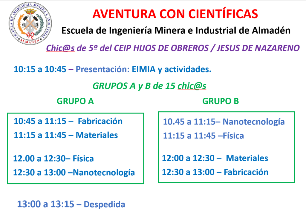 Ayer, 11 de febrero, con motivo del Día Internacional de la Mujer y la Niña en la Ciencia, recibimos en la EIMIA la visita de alumnos y alumnas de 5º de Primaria de los CEIP Hijos de Obreros y el CEIP Jesús de Nazareno de Almadén.