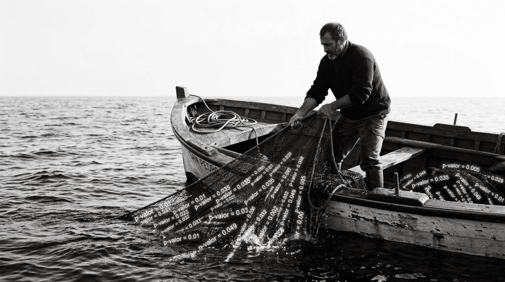 El p-valor es una herramienta poderosa cuando se usa como lo que es: la probabilidad de obtener datos tan extremos como los observados si la hipótesis nula fuera cierta, en un experimento diseñado antes de ver los datos. Cuando se convierte en el objetivo de una búsqueda sistemática —cuando el investigador lanza la red una y otra vez hasta que la bota que saca parece un atún—, deja de medir lo que promete medir.