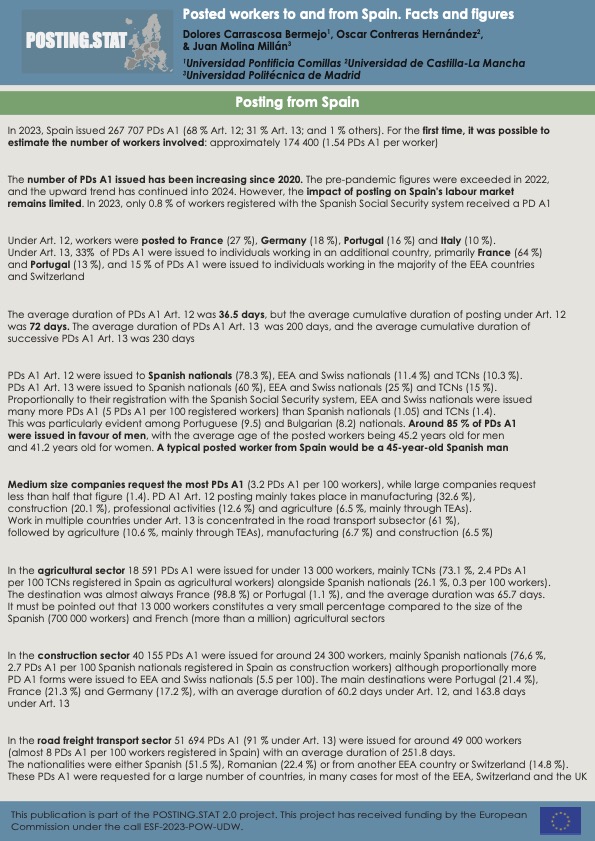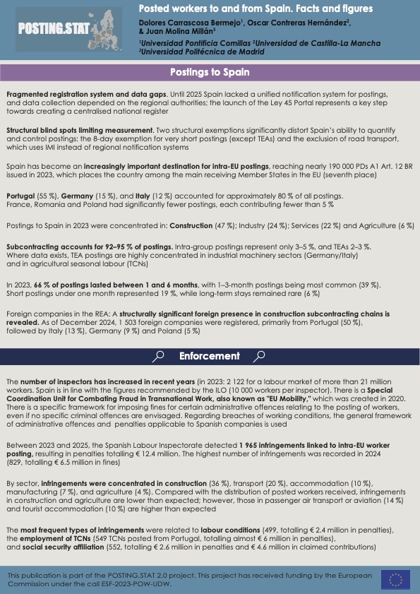 Carrascosa Bermejo, D., Contreras Hernández, Ó., & Molina Millán, J. (2026). Posted workers from and to Spain. Facts and figures. (POSTING.STAT 2.0). HIVA KU: Leuven; Universidad Pontificia Comillas: Madrid & UCLM: Cuenca. https://doi.org/10.5281/zenodo.19071214