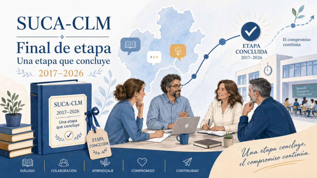 En reunión celebrada el 22 de enero de 2026, las personas integrantes de SUCA-CLM acordaron la disolución de la Subred Universitaria de Comunidades de Aprendizaje en Castilla-La Mancha, creada mediante Acta Fundacional de 2 de marzo de 2017. Con esta decisión se cierra formalmente una etapa de trabajo colectivo desarrollada desde la Universidad de Castilla-La Mancha en torno al acompañamiento, la formación y la investigación vinculadas a las Comunidades de Aprendizaje y a las Actuaciones Educativas de Éxito. Desde su creación, SUCA-CLM nació como un grupo interdisciplinar de profesorado de la UCLM conectado con los centros CdA de la región, con el propósito de contribuir a la mejora educativa, la reducción del fracaso escolar y la promoción de una educación de calidad para todo el alumnado.