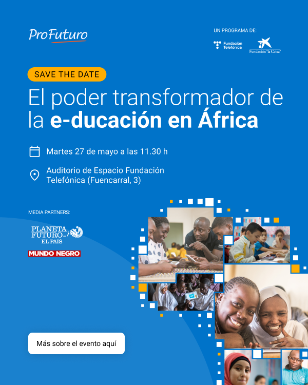 El martes 27 de mayo a las 11:30 en el Espacio Fundación Telefónica de Madrid (edificio Telefónica de Gran Vía, entrada por la calle Fuencarral), el equipo de Profuturo celebrará la jornada “El poder transformador de la e-ducación en África”, que contará con participación de ponentes e invitados de primer nivel.