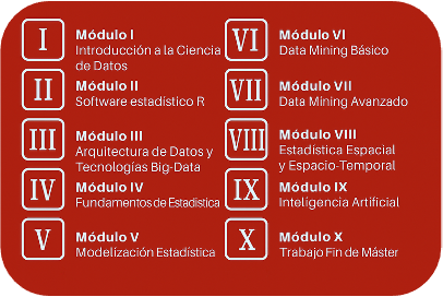 El Máster en Data Science & Business Analytics se compone de los siguientes10 módulos: